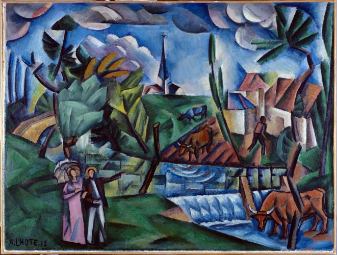 De Le Fauconnier, on note un portait du poète Cattiaux daté de 1910 à la palette très terreuse et d’André Lhote un paysage de 1912, tableau exposé uniquement à Lodève.