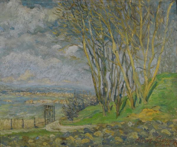 Albert Gleizes commence à peindre en autodidacte, autour de 1901. Il réalise des paysages aux environs de Courbevoie, fortement inspiré par l’impressionnisme notamment Monet, Sisley et Pissarro qu’il voit chez Durand-Ruel (Péniches sur la Seine, 1901 – Paysage, 1903).