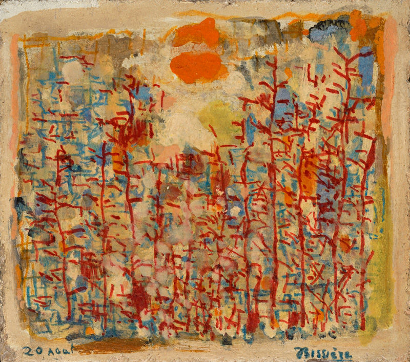 Entre 1939 et 1944, Bissière qui s’est retiré dans sa maison du Lot à Boissierette, arrête de peindre. Cet arrêt « correspond à une période de lente maturation, comme la décantation d’une émotion à la source de sa nouvelle liberté d’expression. »