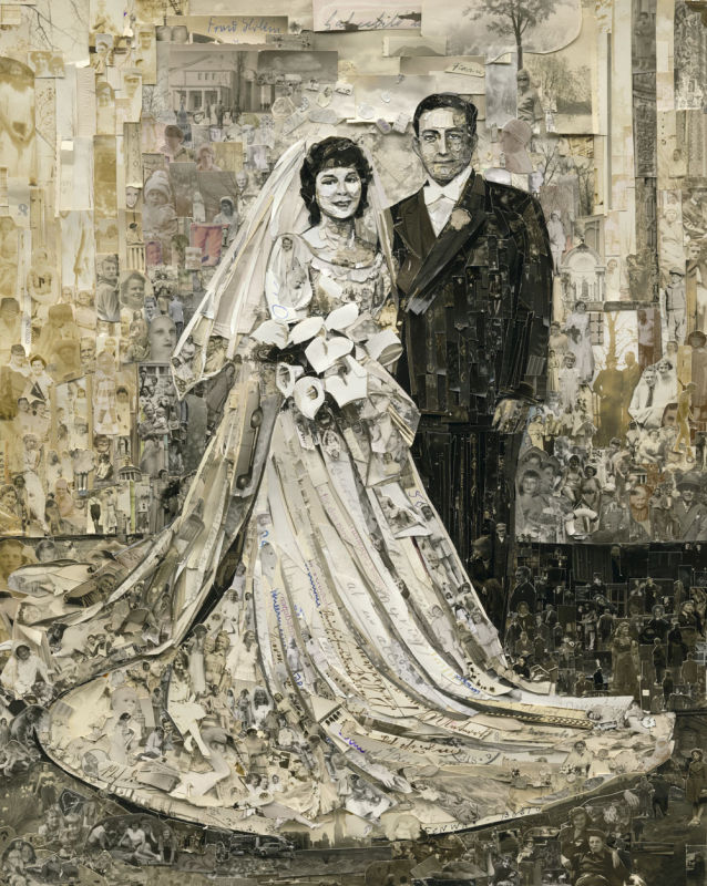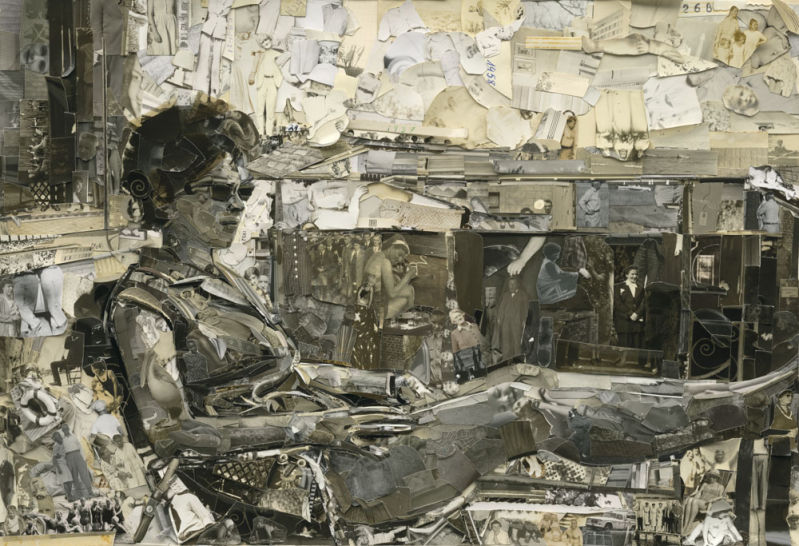 Il a réalisé un agrandissement de cette photo à partir des morceaux de photos qui ne lui appartiennent pas et qu’il a puisés au sein de sa collection, dans ses boîtes « à mémoire ».