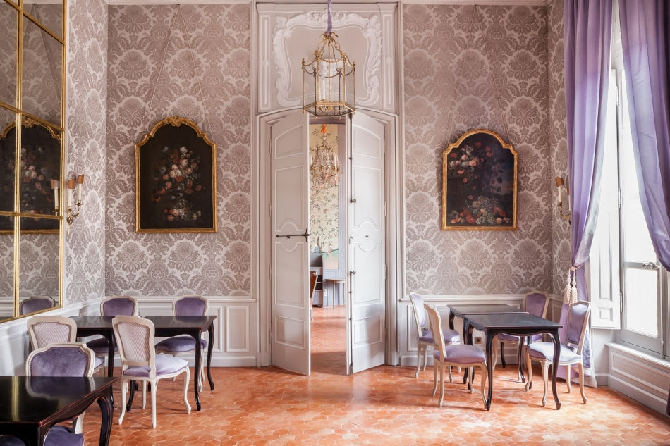 les avons imaginés pour orienter nos choix actuels, l’objectif étant de recréer une harmonie, une alchimie entre les souvenirs passés et la respiration présente de cet hôtel particulier. Dans cette démarche, nous avons retrouvé les couleurs et les matières utilisées au XVIIIe siècle dans les plus belles demeures françaises, jusqu’à Versailles. Sous l’impulsion de Marie-Antoinette, La Pompadour et autres femmes de goût, les roses, le parme, les bleus pâles et autres coloris frais et joyeux ont habillé les salons du Siècle des Lumières ; ils vont parer à nouveau ceux de l’Hôtel de Caumont.
