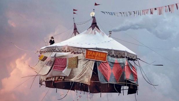 L’exposition « Canaletto, Rome – Londres – Venise, Le triomphe de la lumière » est accompagnée d’une présentation dans la cour d’honneur d’un ensemble de photographies de Laurent Chéhère, issues de sa série « Flying Houses ».