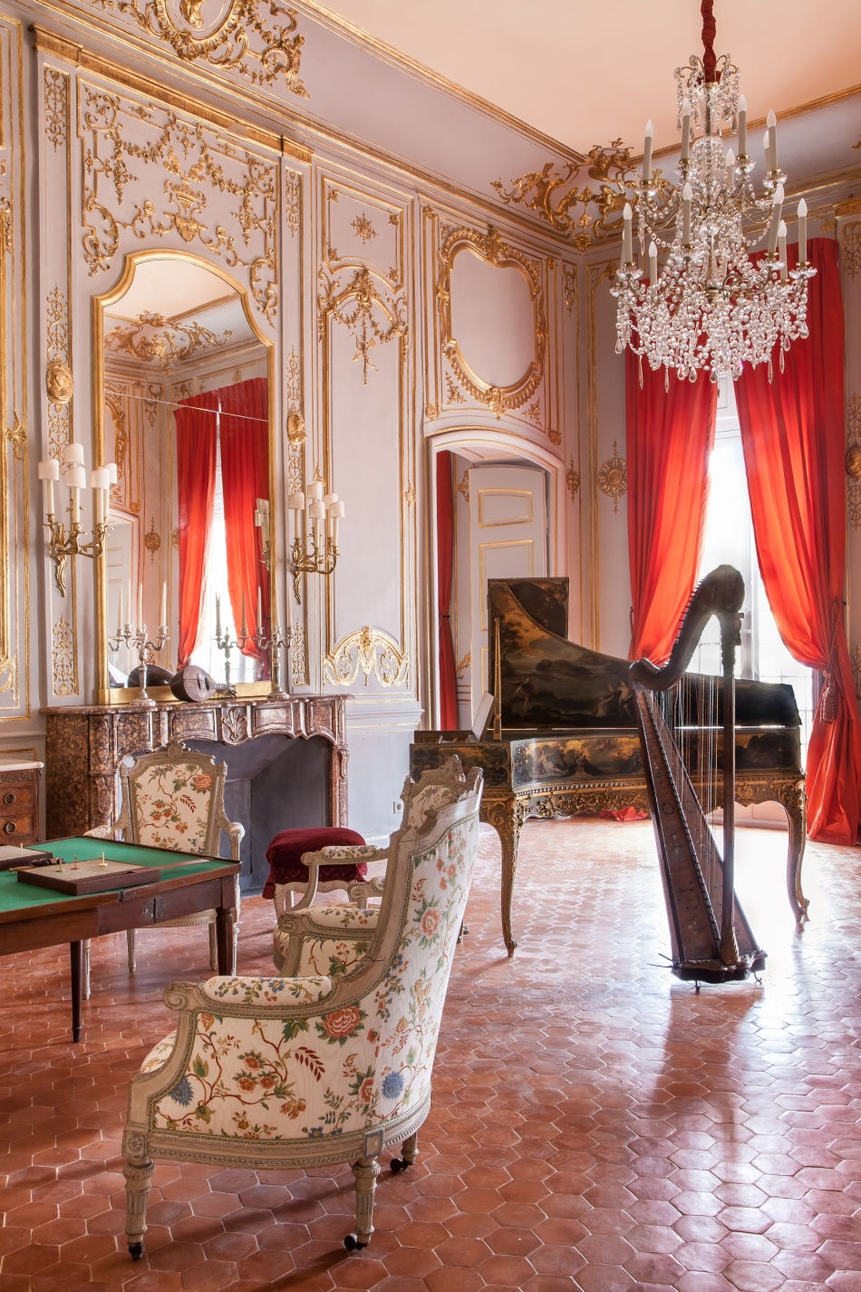 Nous avons ainsi fait resurgir le passé grâce à des sondages qui nous ont permis d’identifier les couleurs originelles de magnifiques décors de gypseries, réalisés entre 1743 et 1748 par les sculpteurs Honoré Gastaud et Esprit Routier, qui sont restitués avec soin. Quant aux éléments décoratifs, témoignages aujourd’hui disparus des fêtes somptueuses données par Pauline de Caumont dans sa jeunesse, nous décoratifs