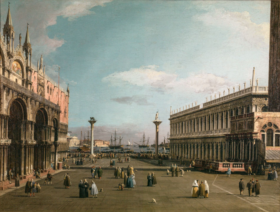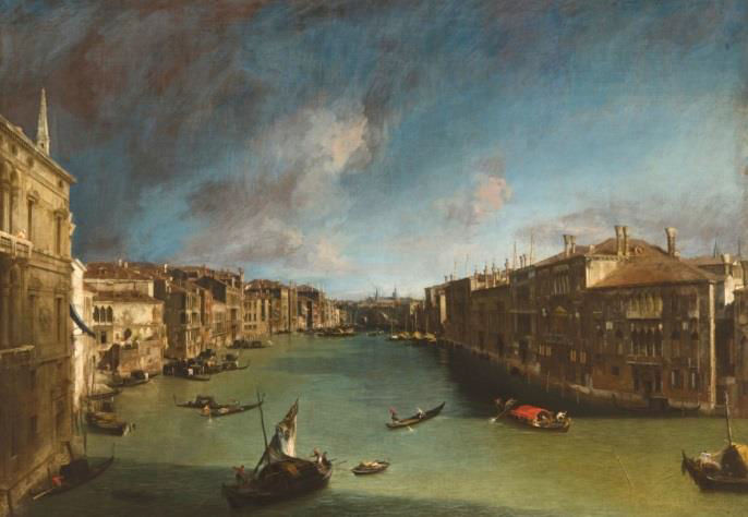 Quatre nouvelles toiles attribuée à Canaletto par la commissaire seront présentées dans l’exposition : Caprice avec ruines romaines (vers 1720-1721, collection particulière), Venise, San Pietro di Castello et Venise, le Grand Canal avec l’église San Geremia, le palais Labia et l’accès au Cannaregio (1736-1738, The National Gallery, Londres), et Caprice avec une église sur une colline (1755-1760, collection particulière).