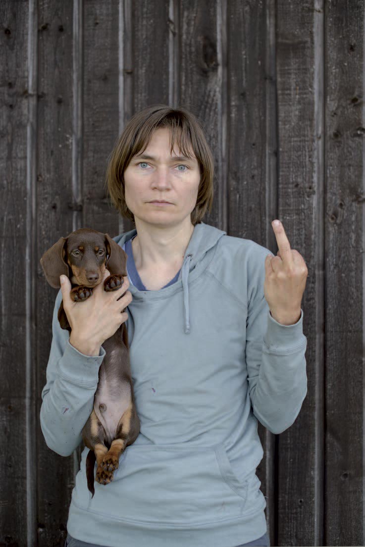 Quelques citations d’Elina Brotherus ponctuent le parcours qui se termine par My dog is cuter than your ugly baby, 2013, un autoportrait provocateur de sa série Carpe Fucking Diem. Gilles Mora en fait le commentaire suivant dans le catalogue : « Cette provocation, si peu conforme à ce que nous imaginons d’Elina Brotherus, leste, en une seule image, toute l’œuvre antérieur d’une gravité que nous pressentions cependant en contemplant l’écheveau de ses images ».