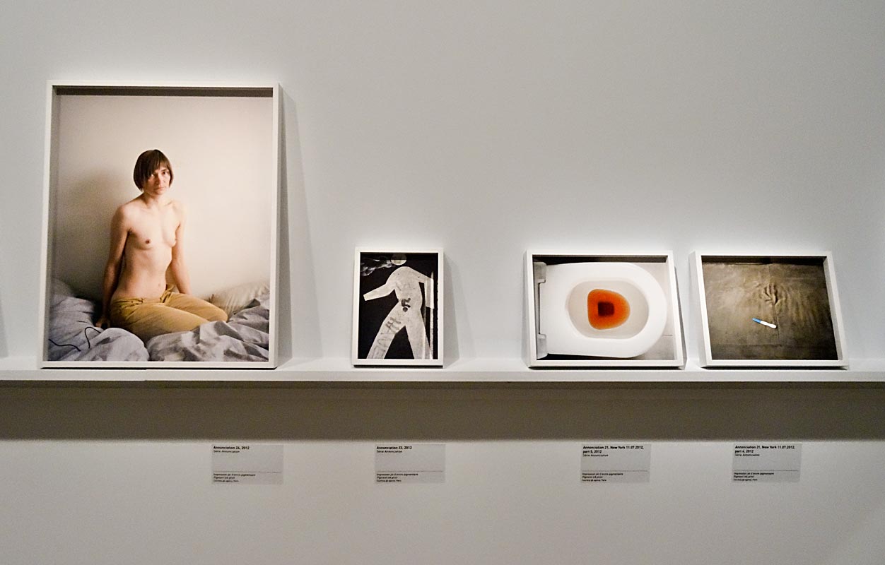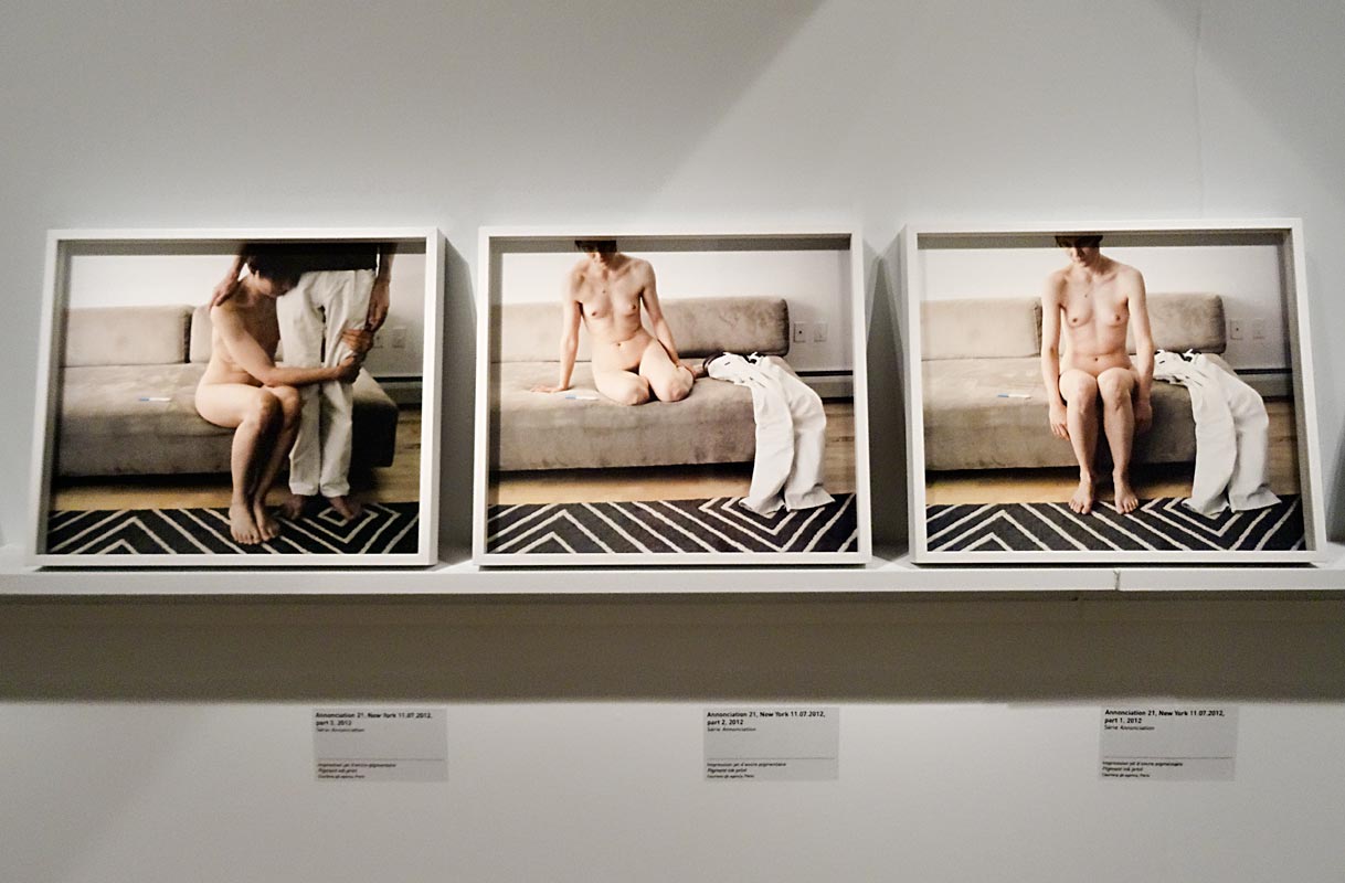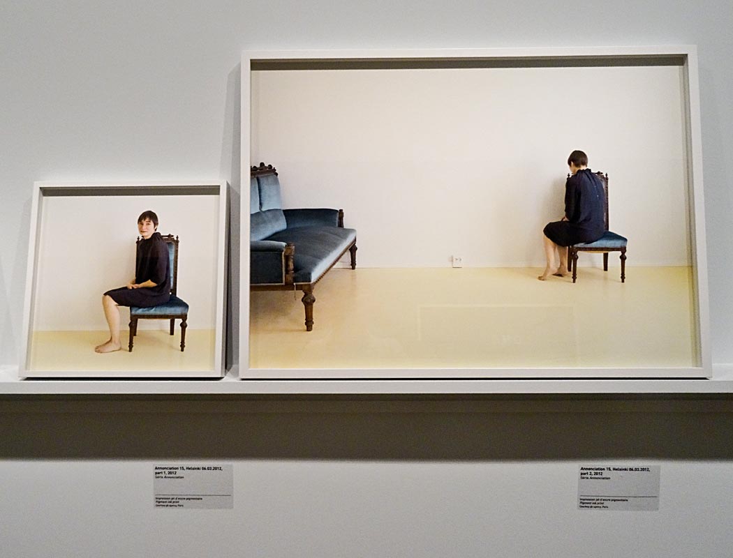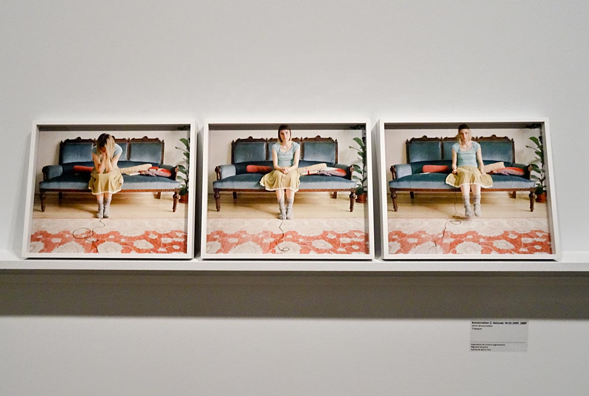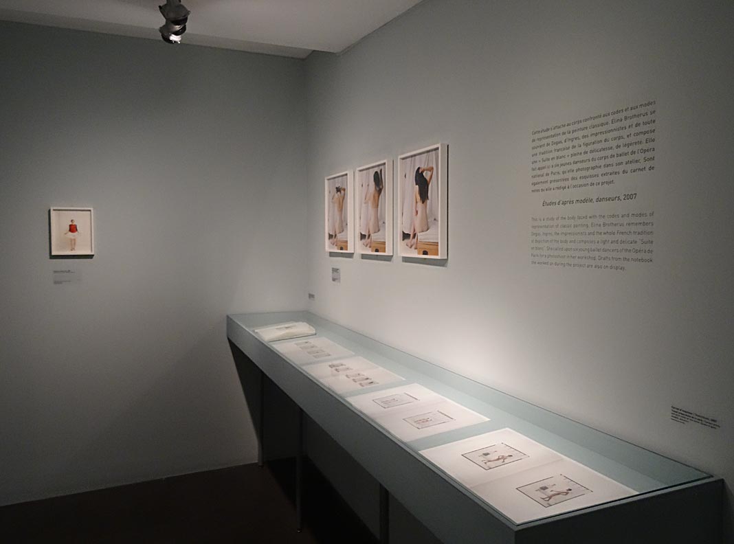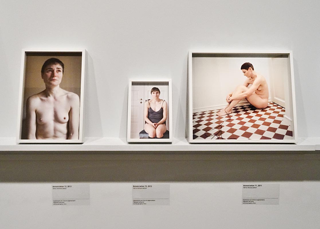 L’ensemble est très abouti et plusieurs séquences sont remarquables. D’une première visite, on retient en particulier Le Miroir (2000-2001) qui termine la première galerie, Études d’après modèle, danseurs (2007) accompagné d’un des carnets de notes d’Elina Brotherus, la longue cimaise au premier étage avec les 45 photographies de Large de vue, hommage à Erik Satie (2006) et la poignante série Annonciation (2009-2013) qui clôt le parcours…