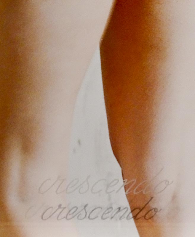 Ce véritable hommage à l’œuvre d’Erik Satie met en résonance les autoportraits et paysages d’Elina Brotherus avec les indications musicales du pianiste français. Gravés dans le verre de l’encadrement de chaque photographie, ces mots et expressions de Satie ont inspiré les œuvres réalisées par Elina.