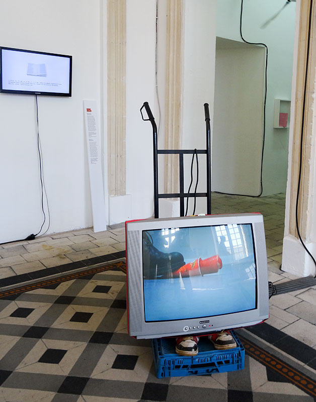 Au fil du parcours, on découvre des cimaises posées négligemment au sol ou contre les murs, dans un fatras qui remet en cause, avec humour et dérision, les pratiques habituelles de la scénographie d’exposition.
