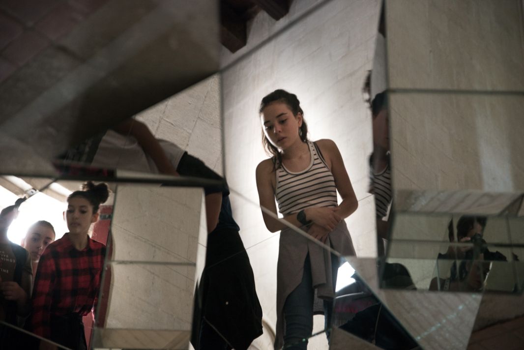 Les jeux d’optique, avec des miroirs par exemple, sont là pour questionner nos certitudes, notre perception des éléments. Jusqu’à venir perturber notre stabilité. Le spectateur devient acteur face aux surfaces réfléchissantes. Par son mouvement ou son reflet, il modifie l’œuvre et se retrouve acteur d’un réel réinventé.