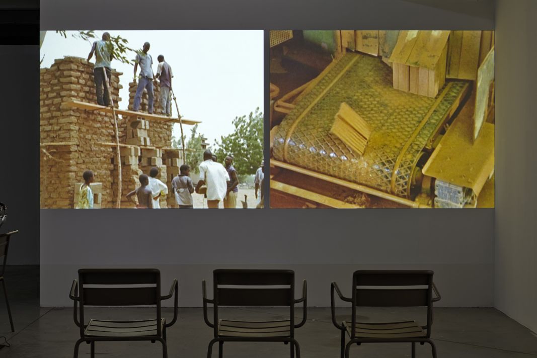« Dans cette installation vidéo, c’est la question du travail et de ses représentations qui est au centre du propos. Les conséquences des processus de rationalisation et d’automatisation sont interrogées à travers l’exemple de la production et de la transformation de briques. Des images tournées dans diverses usines en Inde (Mumbai, Nimbut et Pune) telles que la scène de l’ouvrière assise sont projetées seules ou côte à côte, en alternance ou confrontées à des images tournées dans des usines européennes. À la présentation de procédés de fabrication de plus en plus automatisés, succèdent diverses temporalités et sociétés que Farocki fait dialoguer dans une série de différentes constellations ».