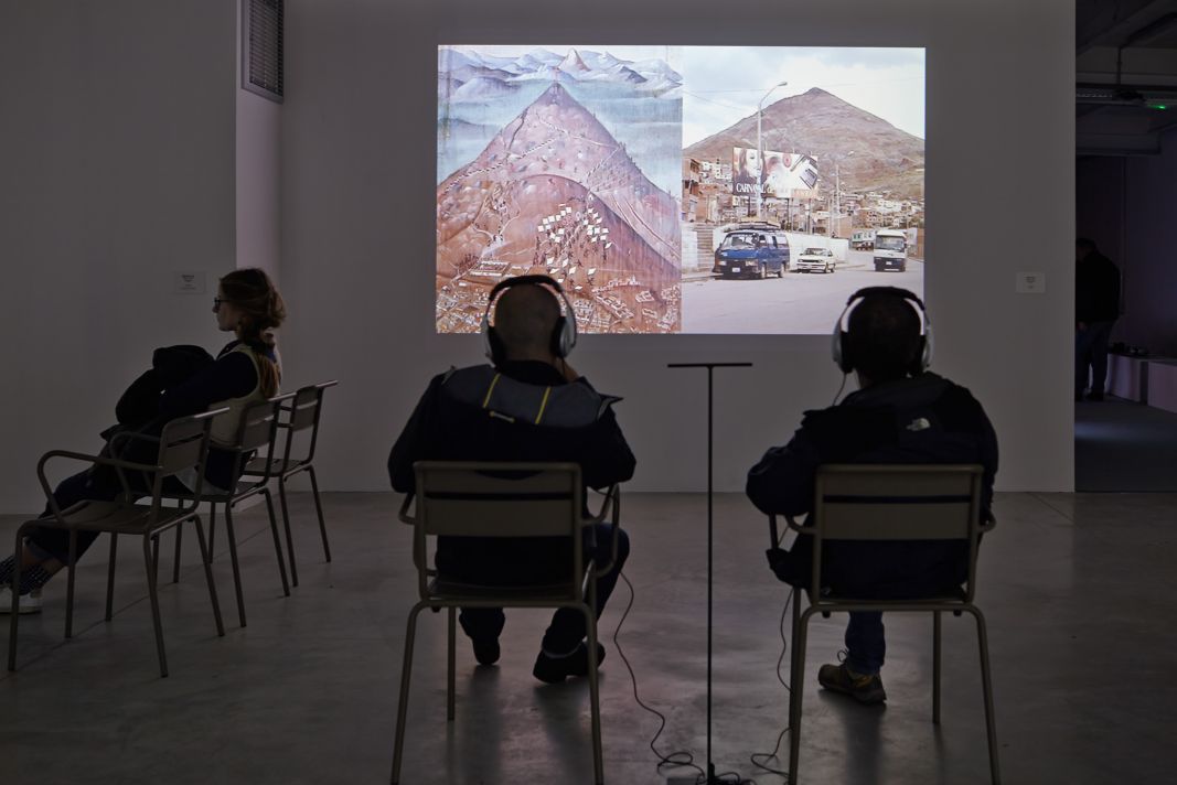 « Farocki résume son installation ainsi : “Les Espagnols ont apporté la croix et ont récupéré l’argent”. L’artiste fait référence à une peinture, Descripción del Cerro Rico e Imperial Villa de Potosí (Description du Cerro Rico et de Potosi, la ville impériale), réalisée par Gaspar Miguel de Berrío 1706-62, à partir de laquelle il développe un discours sur le processus européen de colonisation et le pouvoir qui a découlé du contrôle des méthodes de production. Cette œuvre est une analyse complète par laquelle les villes, les travailleurs et les mines d’argent de Potosi, en Bolivie, étaient représentés pendant toute la période de la colonisation espagnole. Les différentes parties de la peinture sont comparées aux images filmées sur les mêmes sites en 2010 ».