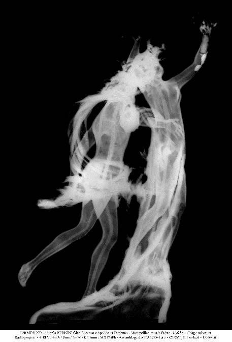 Le bronze à fait l’objet d’une analyse poussée au C2RMF : photographie au rayon X, analyse du métal ainsi que du noyau en argile. Les éléments récoltés conduisent à l’hypothèse d’une fonte française du début du XVIIIème siècle, bien que l’œuvre originale en marbre soit italienne. Le bronze du musée Fabre est confronté à trois autres tirages du même sujet : l’un d’entre eux du musée des beaux-arts de Dijon, les deux autres en collection particulière. Au visiteur d’aiguiser son regard, pour savoir si ces œuvres ont été produites par le même atelier !