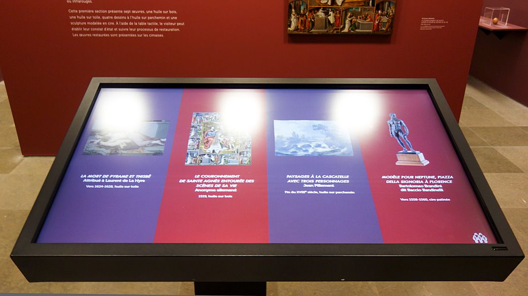 Après une initiation au constat d’état grâce à une table tactile, le parcours de visite propose cinq études de cas à partir d’œuvres de la collection :