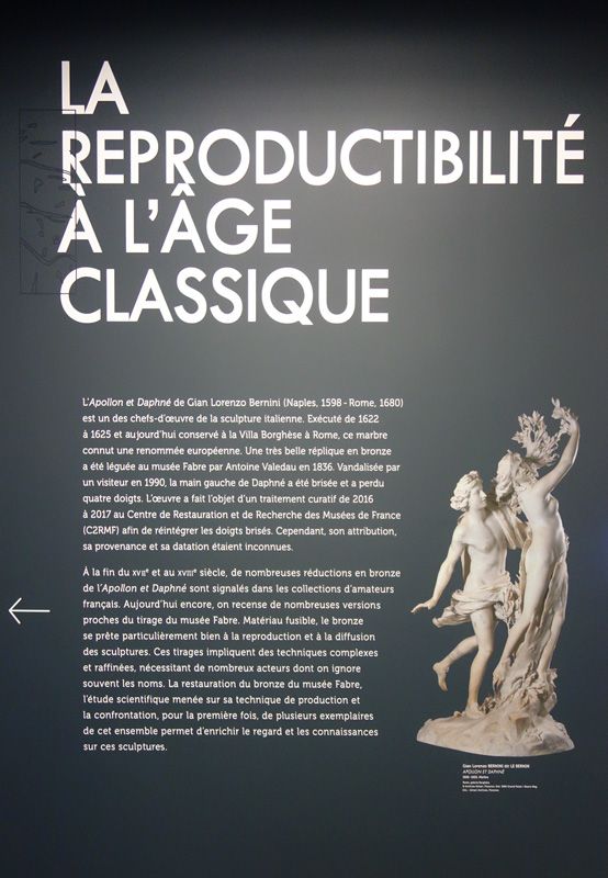 Une superbe réplique en bronze du célèbre marbre du Bernin conservé à Rome à la Galerie Borghèse a été léguée au musée Fabre par Antoine Valedau en 1836. Vandalisée par un visiteur en 1990, la main gauche de Daphné a été brisée et a perdu quatre doigts. L’œuvre a été restaurée au Centre de Restauration et de Recherche des Musées de France (C2RMF) afin de réintégrer les doigts brisés. Cependant, à cette occasion, une étude plus détaillée de cette fonte anonyme a pu être menée.