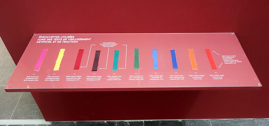 Une étude approfondie a été réalisée par le restaurateur afin de trouver la méthodologie la plus adaptée pour résoudre une problématique bien précise. Une batterie de test de vieillissement artificiel ainsi que de traction a été réalisée sur des éprouvettes reprenant des matériaux proches de ceux utilisés par l’artiste. Ces tests ont pour objectif d’anticiper le vieillissement futur de matériaux contemporains dont on ignore le devenir. Il s’agit ainsi de montrer au public les résultats de ces tests et d’expliquer le processus de dégradation comme de restauration des œuvres.