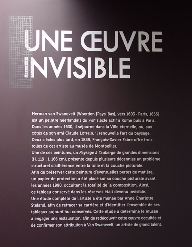 Dans ses collections, le musée conserve depuis 1825 une toile donnée par son fondateur, François-Xavier Fabre, et attribuée à Herman van Swanevelt. Cette œuvre, très fragilisée et marquée par de nombreux soulèvements, a été recouverte depuis plusieurs décennies par des couches de papiers japon, dont le rôle est d’empêcher d’éventuelles pertes de matière. Cependant, cette protection rendait totalement invisible la surface de l’œuvre. Les recherches menées sur l’œuvre de Van Swanevelt ont motivé la décision d’enlever le papier japon et de lancer une restauration, à la suite d’une étude préliminaire approfondie, dans le but de confirmer ou non l’attribution traditionnelle de cette œuvre à cet artiste nordique.