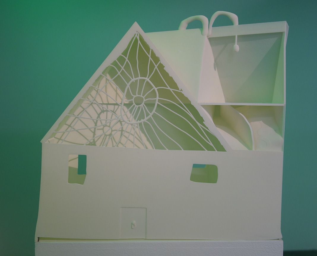 « With Sarah » est une version « démembrée » d’une construction réticulaire imaginée à partir du projet de « maison sans fin » de Sarah Winchester et des ouijas, les outils utilisés pour faire dessiner les esprits…
