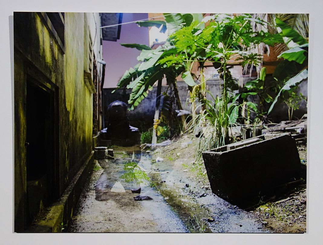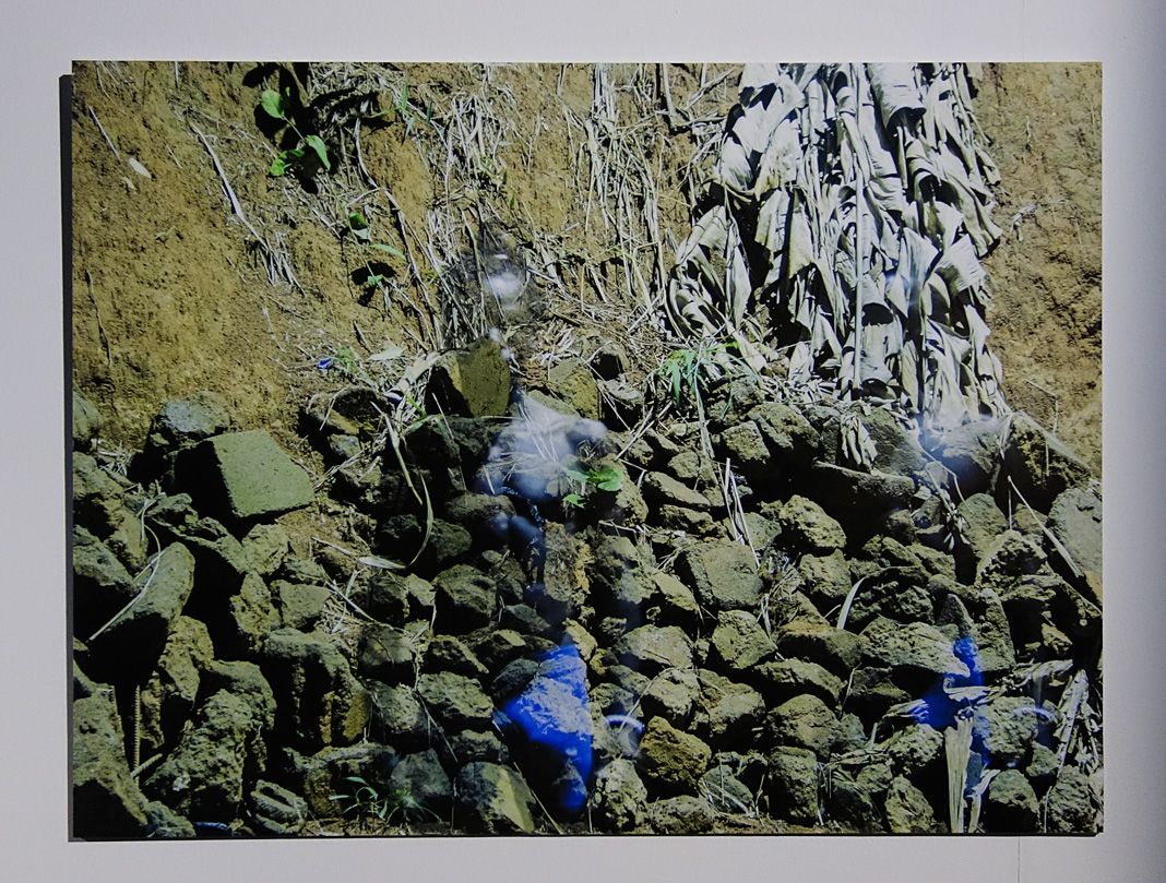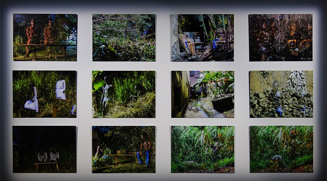 Au revers de la cimaise verte, on découvre un ensemble très intéressant de photographies de Romuald Dikoumé qui composent une série intitulée « Reconnection with the nature ». S’il n’appartient pas au collectif Bandjoun Station et si ses images n’ont pas été réalisées pendant la résidence à Apt, son travail est peut être celui qui résonne le mieux avec celui que présente Barthélémy Toguo et avec une certaine idée de « Homo Planta ».