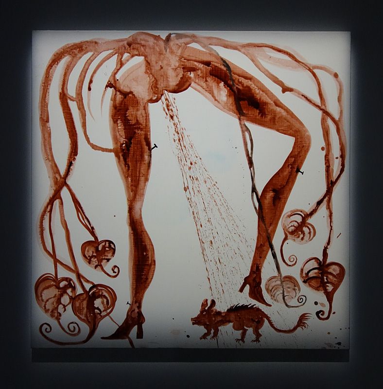Cette lumière fait particulièrement ressortir les encres sur fond blanc de Toguo. Elle donne parfois l’illusion d’un rétroéclairage ou d’une projection.