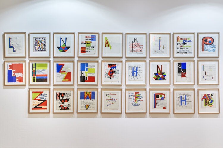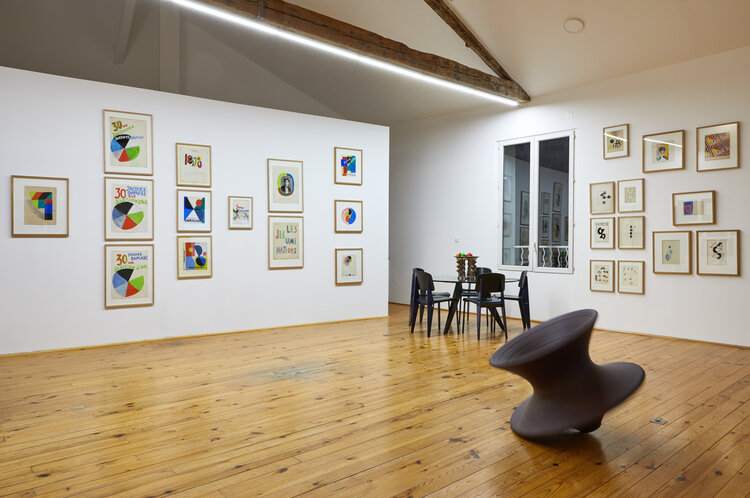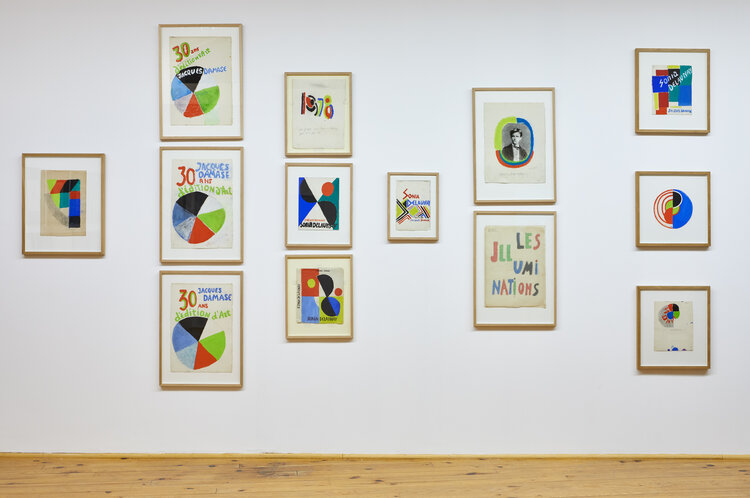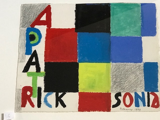 L’exposition « Patterns » est la 3 ème exposition de gouaches de Sonia organisée par Patrick Raynaud dans son lieu marseillais « #7 clous à Marseille », après « Back to the 70’s » (2018) et « Le livre blanc » (2019). Entre autres gouaches préparatoires inédites, on pourra découvrir les 25 planches de recherches pour un alphabet pour enfants paru aux éditions de l’Ecole des Loisirs dans les années 1970, des motifs pour des tissus édités en Hollande, dans les années 20, pour la firme Metz & Co, des modèles de « robes simultanées » des années 30 (on sait peu que le fameux « rythme sans fin » de Robert Delaunay prend sa source, ainsi qu’il le reconnaissait lui-même, dans « La danse de la Robe » un modèle de robe « fantaisie », comme on disait alors, de Sonia…), ainsi que plusieurs études typographiques, maquettes d’affiches et d’invitations ou même une carte de vœux commandée par Claude Pompidou…