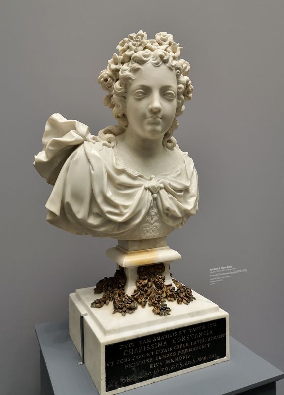 Il est flanqué d’un buste, attribué à Marc Arcis, de la fille de Jean et Catherine Deydé, Constance, morte à l’âge de cinq ans, en 1679. Ce drame a sans doute eu des conséquences importantes sur la décoration finale de la chapelle avec l’apparition de portraits sculptés dans les commandes des Deydé.