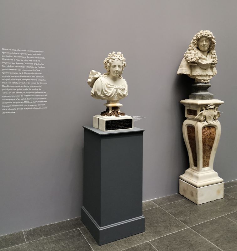 La figure du commanditaire, Jean Deydé, est illustrée par un second buste à son effigie, exécuté par Christophe Veyrier en 1684 pour son hôtel particulier montpelliérain de la rue du Cannau. Prêté par le Metropolitan Museum of Art de New York, la sculpture est placée sur un piédouche qui repose lui-même sur superbe piédestal avec les armes de Jean Deydé.