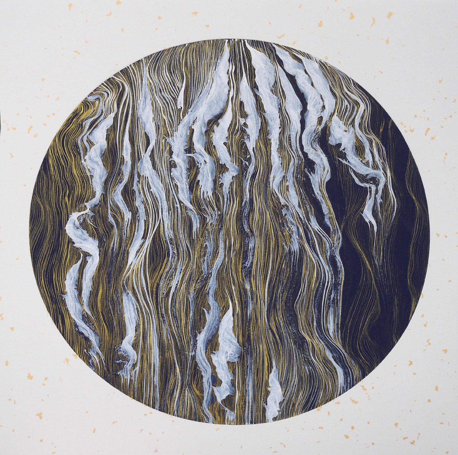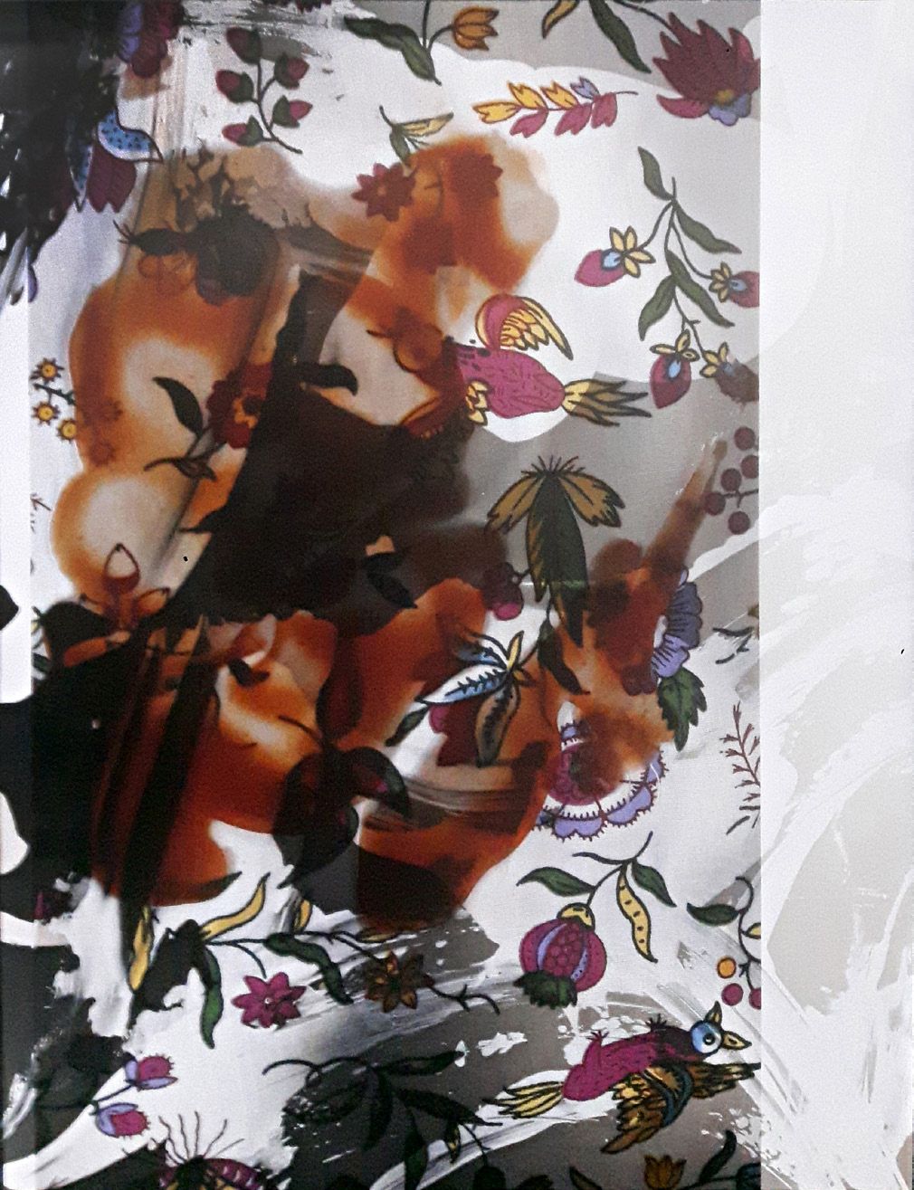 Son intérêt pour le dessin – une des formes de communication les plus anciennes et les plus instinctives – et pour le fragile, le délicat et l’éphémère, l’incite à travailler sur toute sorte de supports et avec différents médiums. Encre, feutres micron sakura, gros sel, paraffine, gants en latex, aquarelle, papiers divers ; de préférence du papier végétal, artisanal, vivant. Elle entretient une fascination pour les formes organiques en perpétuelle évolution et les oiseaux. Les silhouettes évidées d’oiseaux servent de support à des entrelacs de lignes.